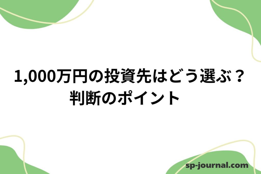 1,000万円という資金があれば、投資の選択肢は大きく広がります。しかし、選べる幅が広いからこそ「何を基準に選べばいいのか」で迷いやすくなります。