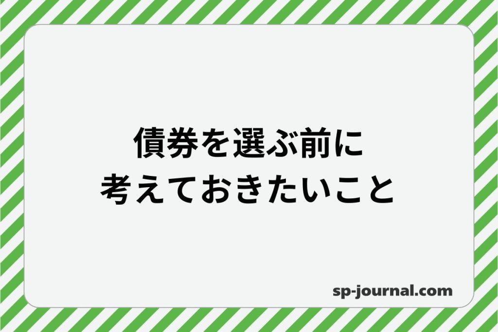 まず、債券に何を求めるかを明確にしましょう。利息収入を重視するのか、値動きを抑える役割を期待するのかで選択肢は変わります。