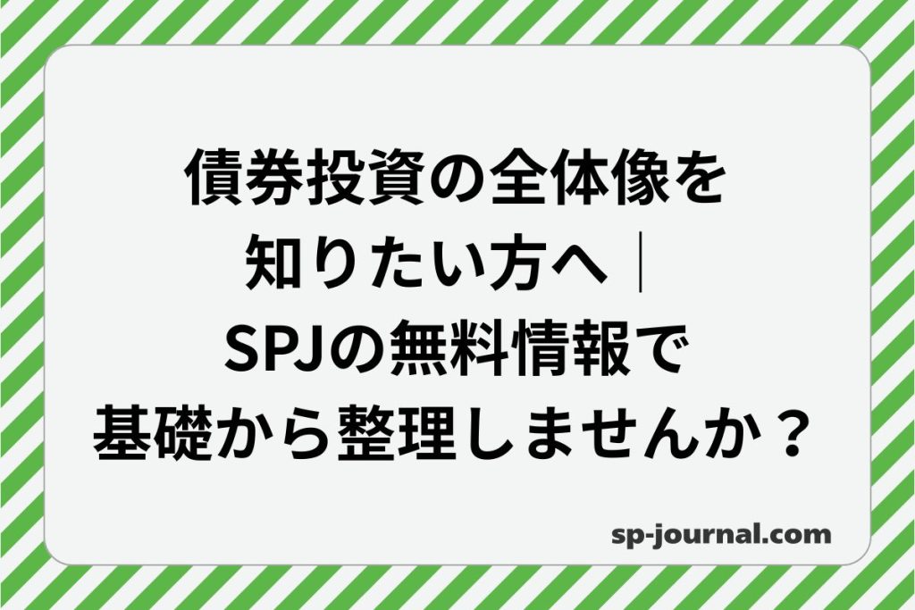 債券投資の全体像を知りたい方へ|SPJの無料情報で基礎から整理しませんか?